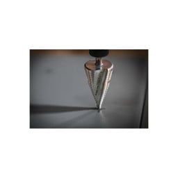 Diablo's new step drill bits bring exclusive technology to the electrician, plumber and HVAC contractor with fast, accurate cuts and increased stability in thin metals, PVC other plastic materials. The innovative split point tip design enables a fast, on-point start resulting in increased durability and up to 4X longer life. An automated precision grinding process on each step reduces wear and delivers 2X faster cuts. Multiple hole sizes are made easy with laser etched step markings while increased step heights for common hole sizes makes drilling holes more efficient and faster. Designed with a 1/4 in hex shank, these bits are impact ready and can be used with drills and impact drivers.