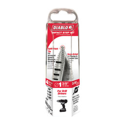 Diablo's new step drill bits bring exclusive technology to the electrician, plumber and HVAC contractor with fast, accurate cuts and increased stability in thin metals, PVC other plastic materials. The innovative split point tip design enables a fast, on-point start resulting in increased durability and up to 4X longer life. An automated precision grinding process on each step reduces wear and delivers 2X faster cuts. Multiple hole sizes are made easy with laser etched step markings while increased step heights for common hole sizes makes drilling holes more efficient and faster.