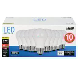 Enjoy all the benefits of advanced LED energy-saving technology with the Feit Electric A800/850/10KLED/10 A19 60 W LED light bulbs. The 5000 K daylight light is non-dimmable and will replace a 60 W equivalent incandescent bulb. It produces a similar light output (800 Lumens), uses 10 W of electricity and up to 83% less energy than a standard incandescent light bulb. Get instant on to full brightness with relatively cool running performance. Feit Electric A19 bulbs have an average life of 11,000 hrs/10 years, are RoHS compliant and 100% mercury-free.