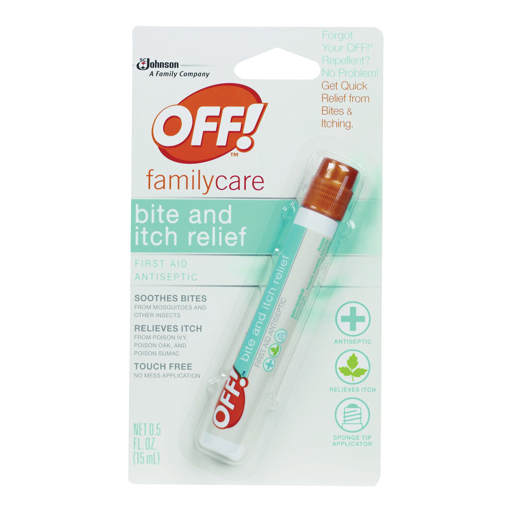 OFF!® FamilyCare bite and Itch Relief, when applied soon after an insect bite, begins to work to counteract the effects of bites and stings from mosquitoes, bees, wasps, ticks, hornets, ants, fire ants, deerflies, sand fleas, horseflies and chiggers.