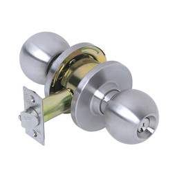 Tell Manufacturing CL101704 Storeroom Knob, Satin, Commercial, 2 Grade, C Keyway, 2-3/8 to 2-3/4 in Backset